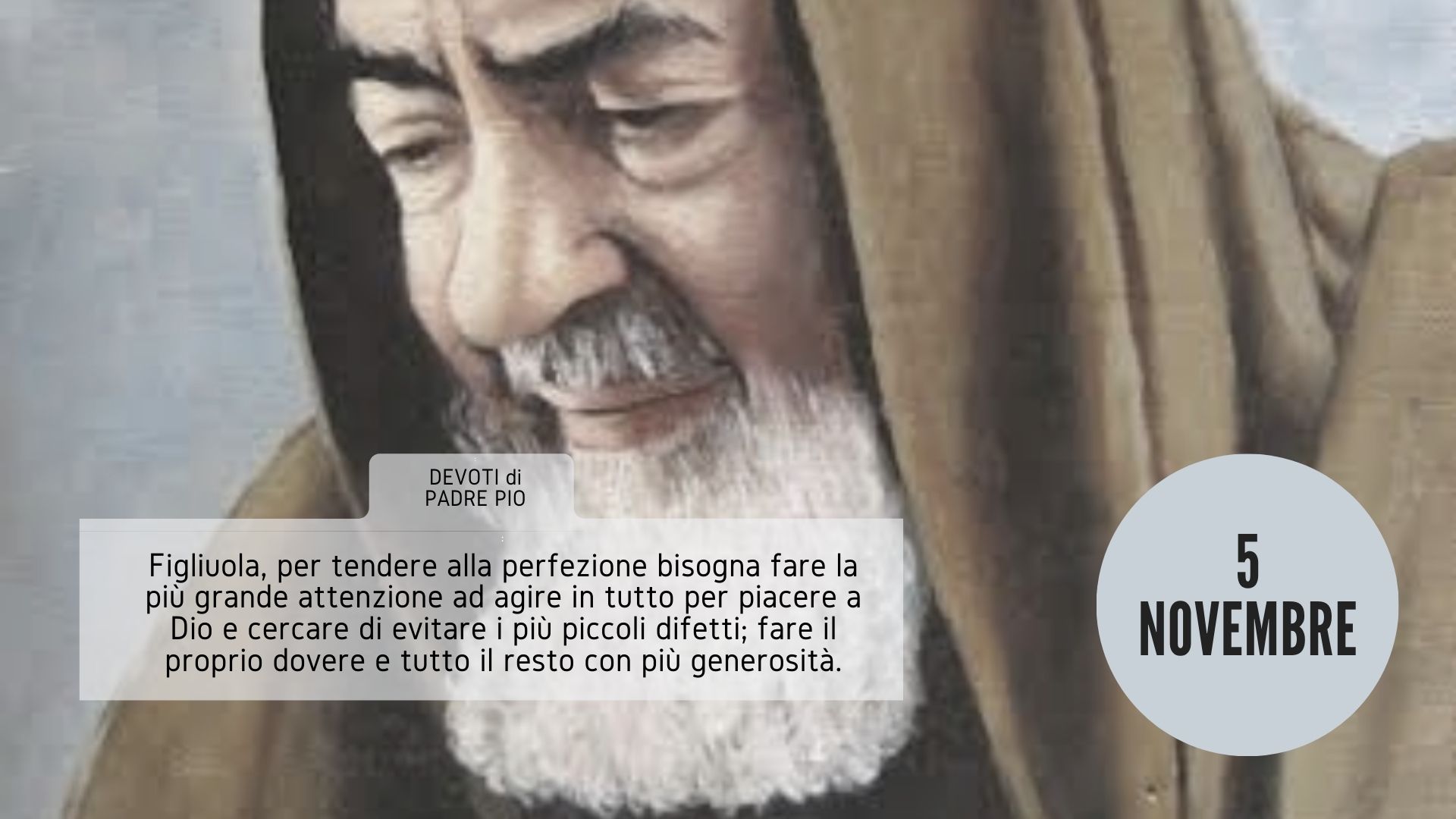 Oggi 5 novembre Padre Pio ci dice: Figliuola, per tendere alla perfezione bisogna fare la più grande attenzione ad agire in tutto per piacere a Dio e cercare di evitare…