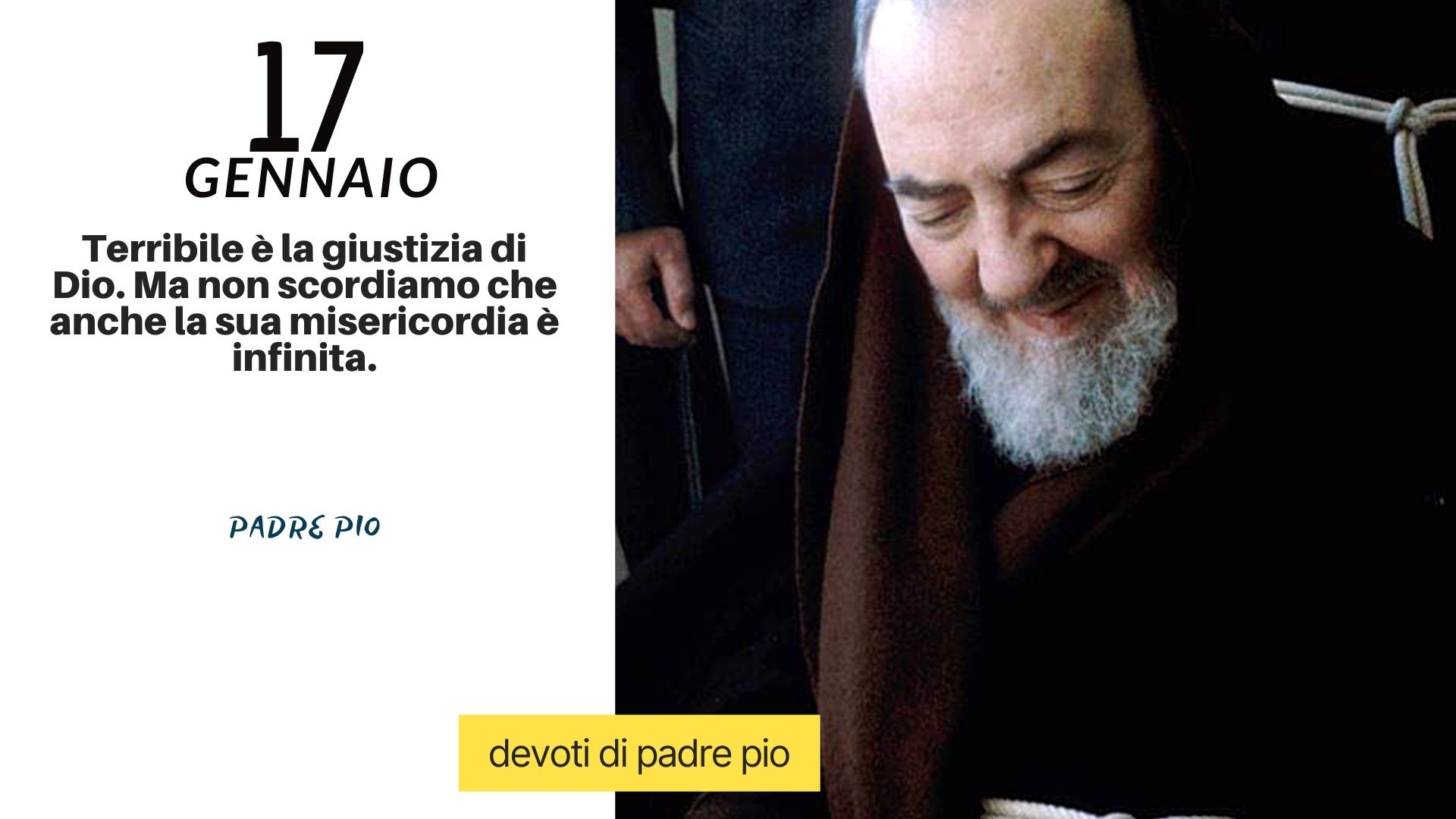 Oggi 17 gennaio Padre Pio ci dice: Terribile è la giustizia di Dio. Ma non scordiamo che anche la sua misericordia è infinita. (Padre Pio da Pietrelcina) contattaci: devoti@devotidipadrepio.it