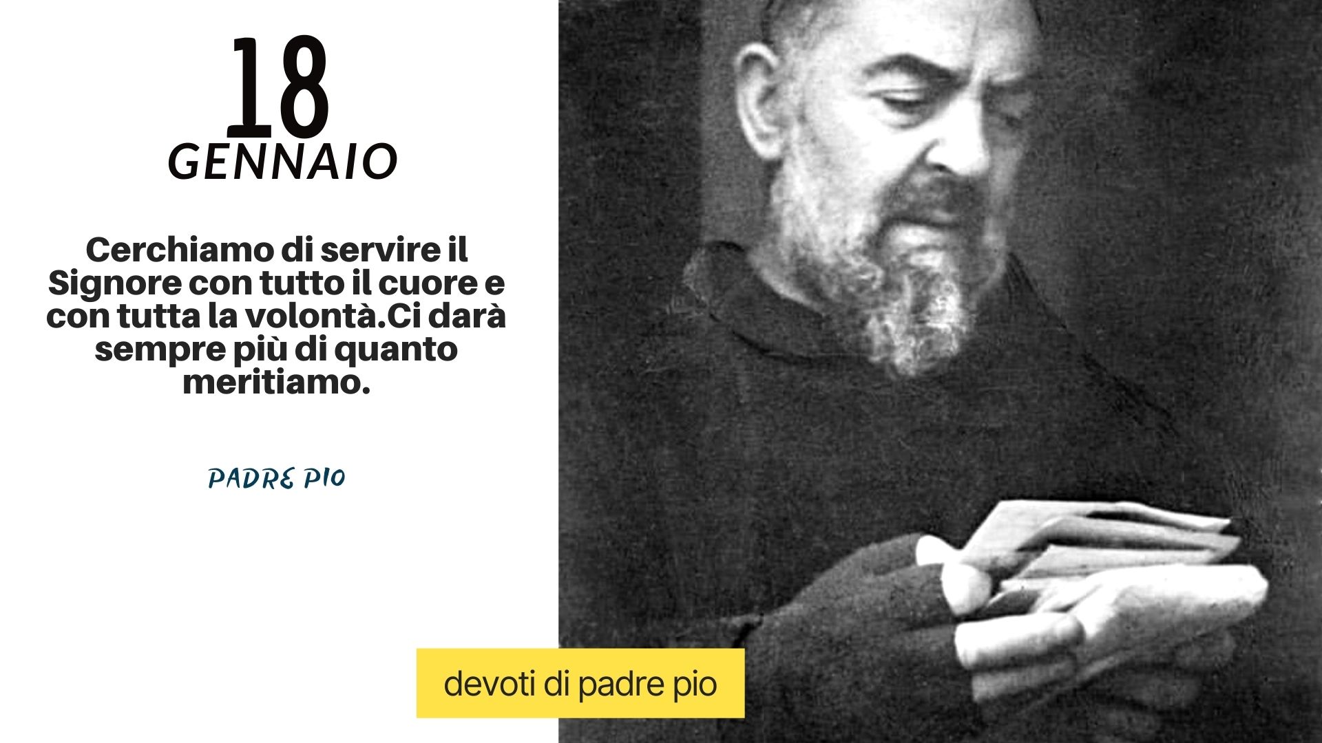 Oggi 18 gennaio Padre Pio ci dice: Cerchiamo di servire il Signore con tutto il cuore e con tutta la volontà. Ci darà sempre più di quanto meritiamo. (Padre Pio…