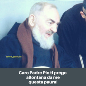 Allontana da me questa grande paura (indicare quale) e aiutami ad avere sempre fiducia in Dio Padre, da cui in ogni momento ho bisogno di sentirmi dire: “Sono qui io…non temere”. Grazie Padre Pio intercedi per me.