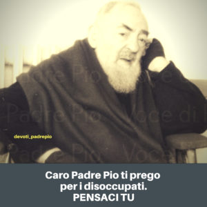 Abbi pietà dei nostri fratelli costretti all’inazione e alla povertà a causa di malattie o di disordini sociali. Caro Padre Pio, ispira ai governanti, ai capi d’impresa e a tutti i responsabili iniziative e soluzioni giuste, perché tutti abbiano la gioia di contribuire, secondo le proprie capacità, alla prosperità comune guadagnandosi onestamente la vita.