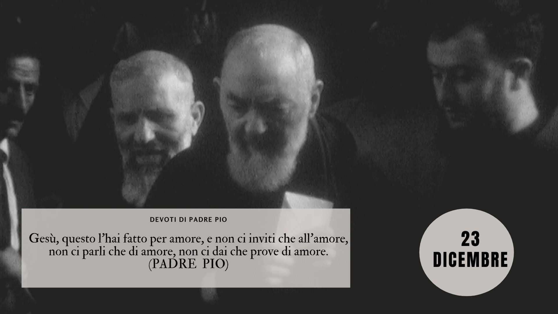 Oggi 23 dicembre Padre Pio ci dice: Povertà, umiltà, abiezione, disprezzo circondano il Verbo fatto carne; ma noi dall’oscurità in cui questo Verbo fatto carne è avvolto comprendiamo una cosa,…