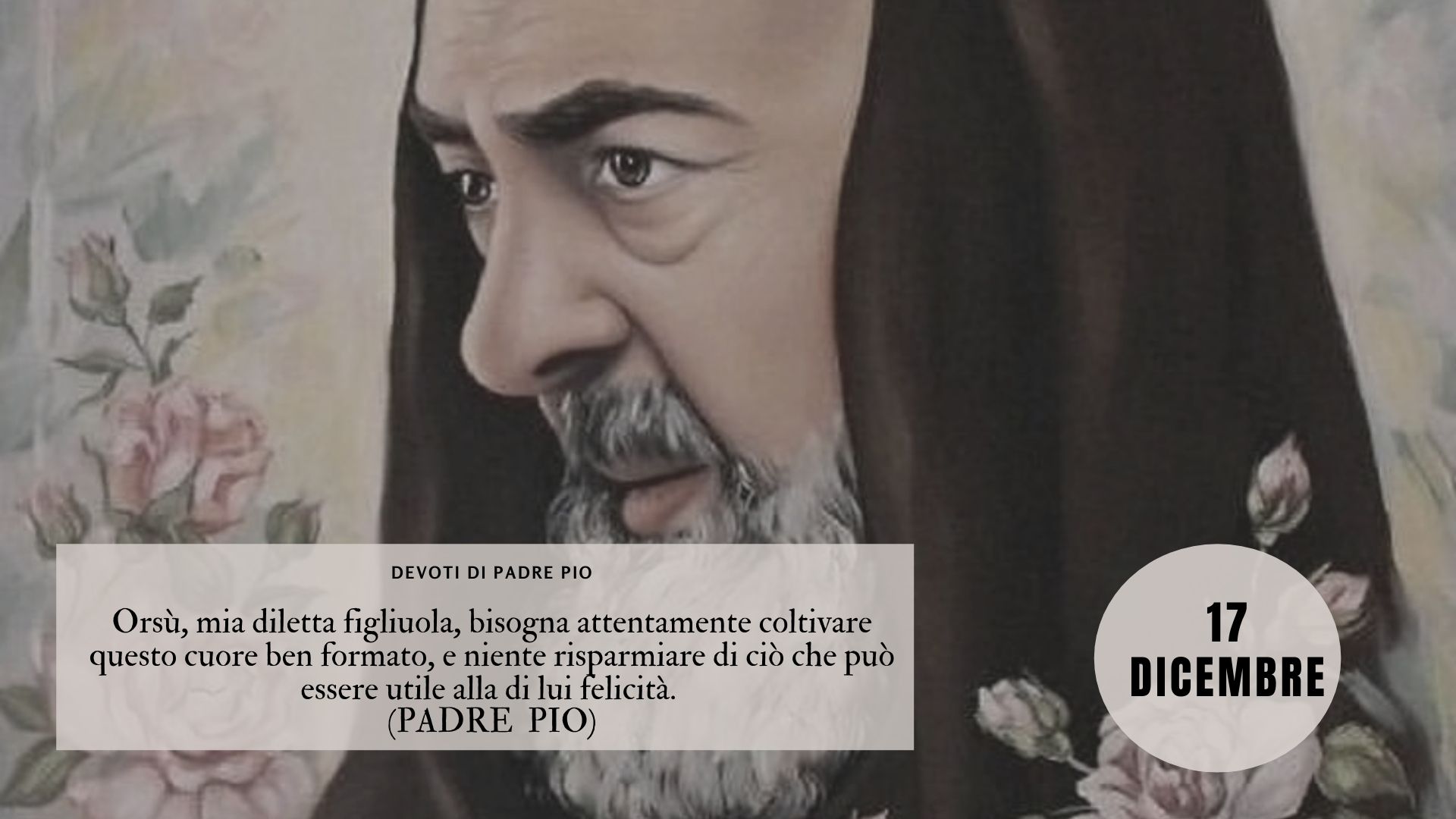Oggi 17 dicembre Padre Pio ci dice: Orsù, mia diletta figliuola, bisogna attentamente coltivare questo cuore ben formato, e niente risparmiare di ciò che può essere utile alla di lui…