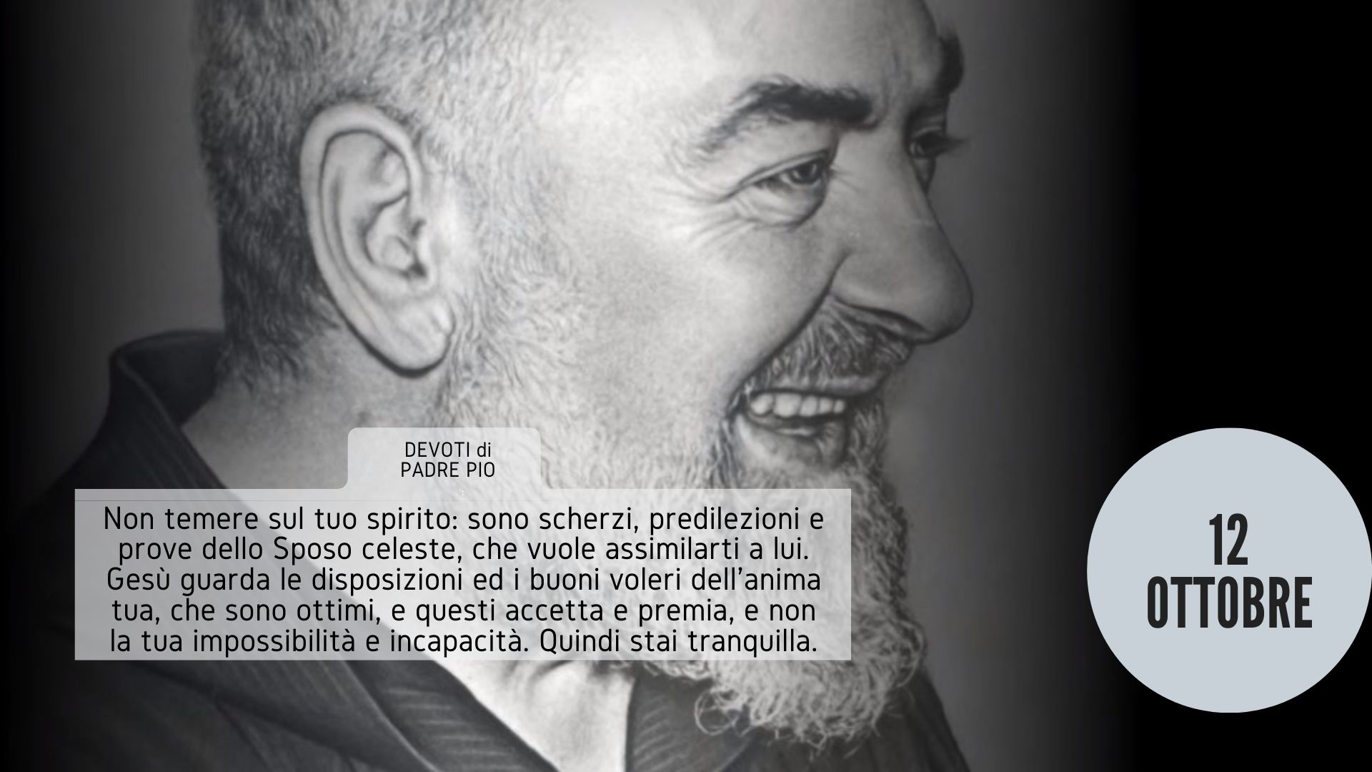 Oggi 12 ottobre Padre Pio ci dice: Non temere sul tuo spirito: sono scherzi, predilezioni e prove dello Sposo celeste, che vuole assimilarti a lui. Gesù guarda le disposizioni ed…