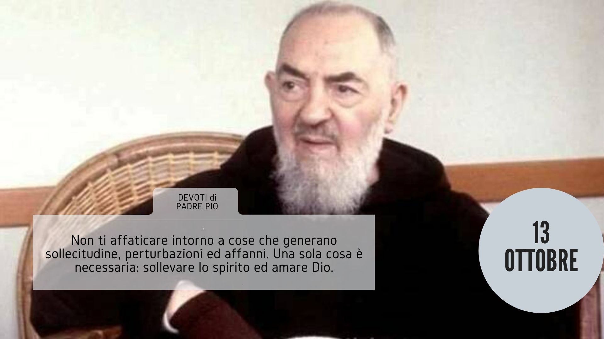 Oggi 13 ottobre Padre Pio ci dice: Non ti affaticare intorno a cose che generano sollecitudine, perturbazioni ed affanni. Una sola cosa è necessaria: 13sollevare lo spirito ed amare Dio.…