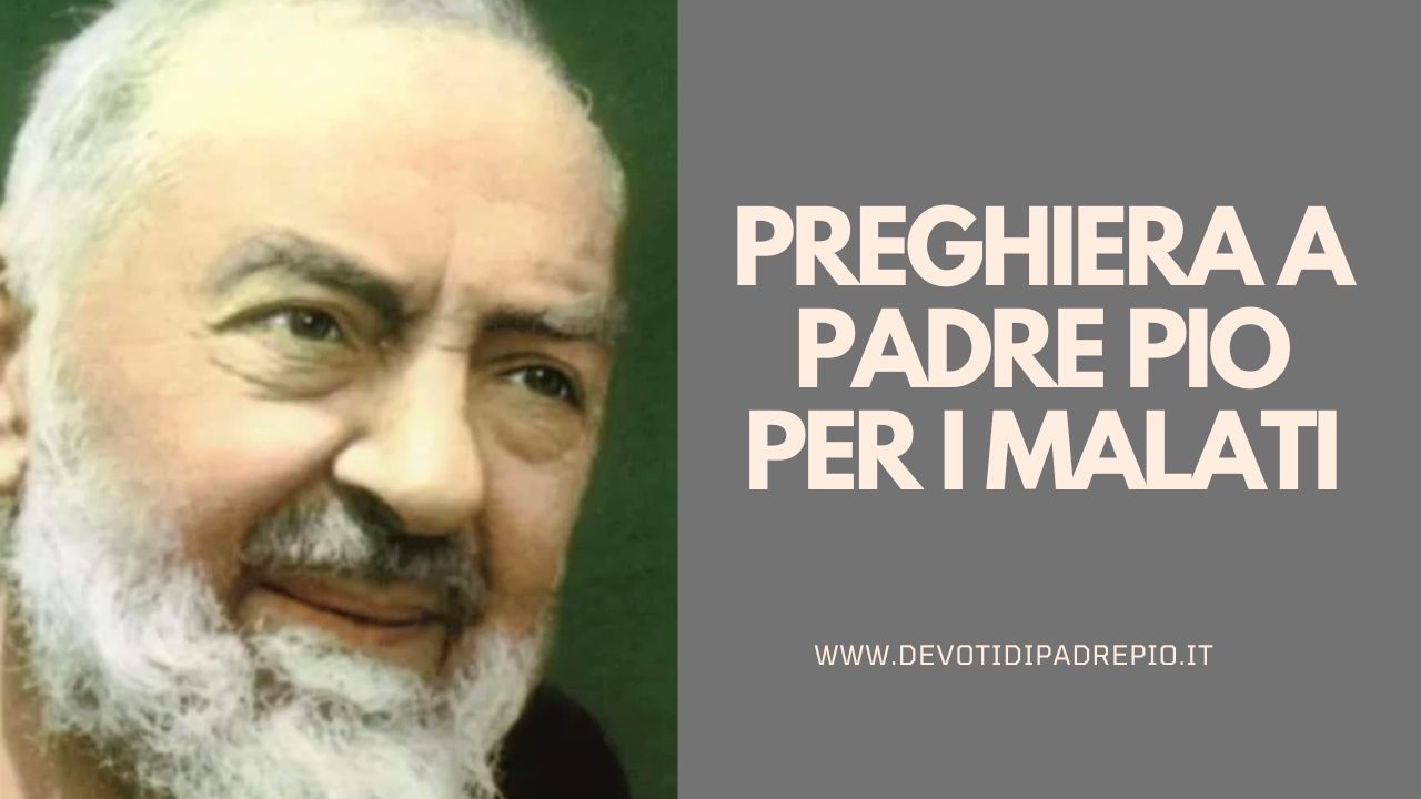 O amato Padre Pio,tu che hai condiviso le sofferenze di Cristonel corpo e nello spirito,volgi il tuo sguardo compassionevolesu tutti i malati del mondo. Tu che hai sperimentato il dolore…