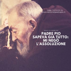 La mattina successiva aspettai davanti al confessionale per ricevere da lui il sacramento della penitenza. Quando mi inginocchiai, Padre Pio mi negò l’assoluzione e mi cacciò via dal confessionale. Mi disse che avevo vissuto troppo tempo nel peccato. Umiliato, ma soprattutto addolorato piansi amaramente. Scoppiai a piangere davanti a tutti come un bambino. Un altro sacerdote mi confortò e mi diede l’assoluzione. Andai via da San Giovani molto triste.