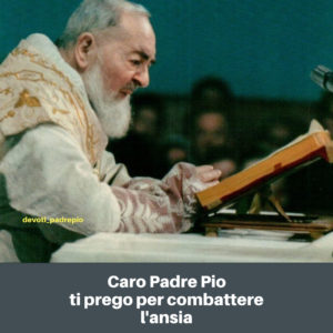 Caro San Pio aiutami ad abbattere questa barriera che si e eretta dentro di me ` e non mi lascia vivere in serenità con la mia famiglia, questa barriera che si chiama ansia aiutami a debellarla e che ritorni sereno con me stesso e con la mia famiglia risana questo mio corpo ,te lo chiedo con tutta la mia fede aiuta San Pio , né sarò sempre grato. Amen